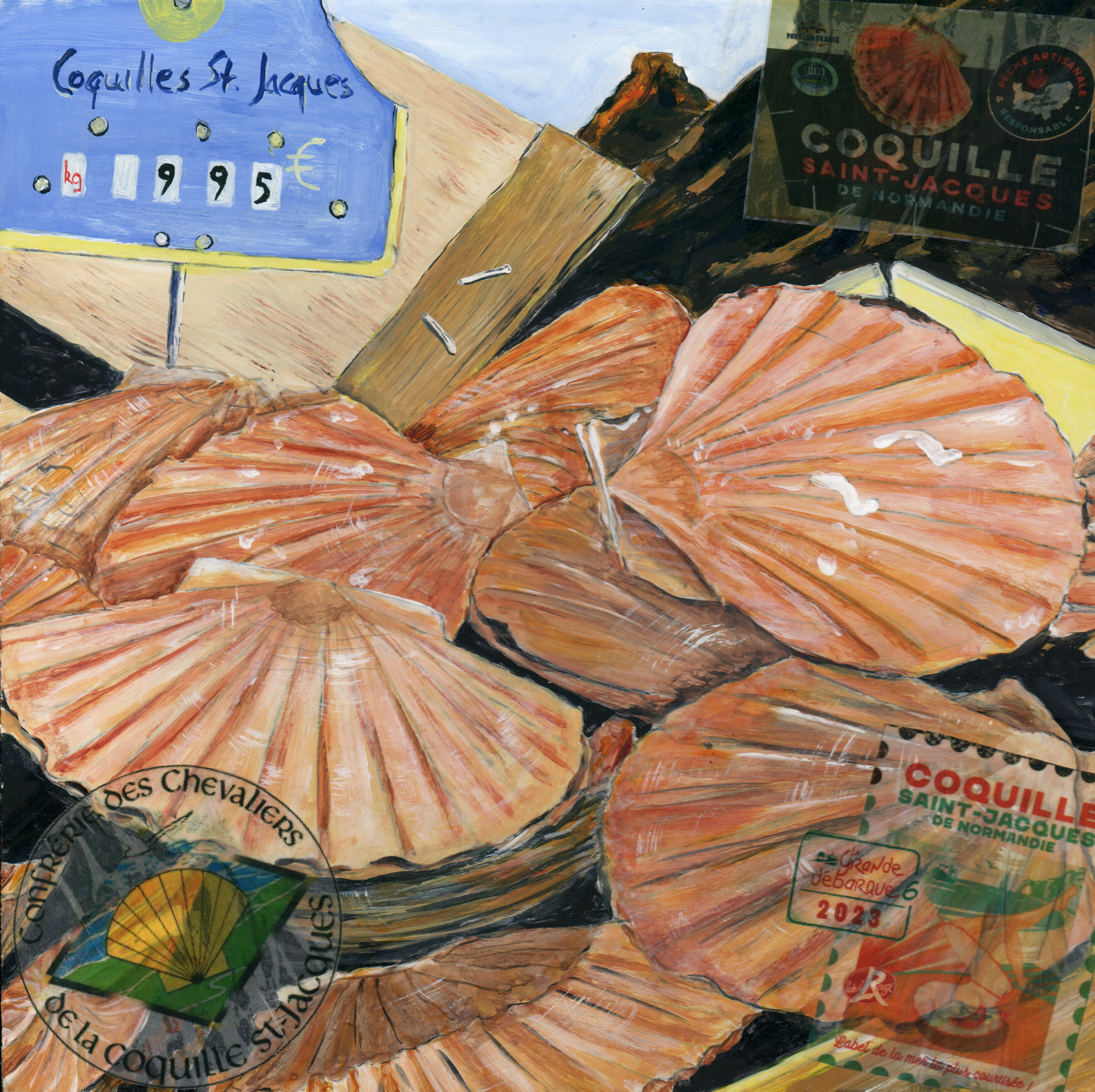 Jakobsmuscheln in Kiste